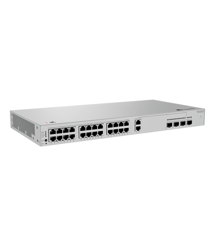 Ports Ethernet : 22 ports RJ-45 10/100/1000 Mbps avec prise en charge PoE+ (IEEE 802.3af/at), fournissant une puissance totale de 400 W. | Ports Combo : 2 ports combo RJ-45/SFP 2,5 Gbit/s (PoE+). | Ports SFP+ : 2 ports SFP+ 10 Gbit/s pour des liaisons montantes à haute vitesse. | Capacité de commutation : 98 Gbit/s ; Taux de transfert : 73 Mpps. | Table d’adresses MAC : jusqu’à 16 000 entrées. | Fonctionnalités L2+ avancées : VLAN (jusqu’à 4094), QoS, ACL, IGMP snooping, STP/RSTP/MSTP, ERPS (G.8032), LACP, DHCP snooping. | Gestion : via interface web, application eKit Cloud et eKit App. | Alimentation : intégrée AC 100-240 V, 50/60 Hz ; consommation maximale de 34,14 W (sans PoE). | Conception : boîtier métallique 1U, montage en rack, bureau ou mural ; refroidissement par ventilateurs intelligents. | Dimensions : 43,6 x 442 x 220 mm ; Poids : 2,81 kg. | Température de fonctionnement : de -5 °C à +45 °C ; Humidité relative : 5 % à 95 % (sans condensation).?